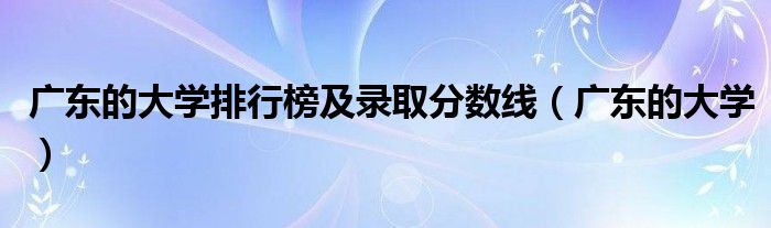 关于广东的大学排行榜及录取分数线,广东的大学这个很多人还不知道,今天菲菲来为大家解答以上的问题,现在让我们一起来看看吧!