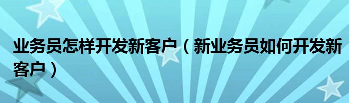关于业务员怎样开发新客户,新业务员如何开发新客户这个很多人还不知道,今天菲菲来为大家解答以上的问题,现在让我们一起来看看吧!