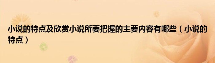 关于小说的特点及欣赏小说所要把握的主要内容有哪些,小说的特点这个很多人还不知道,今天菲菲来为大家解答以上的问题,现在让我们一起来看看吧!