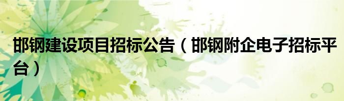 关于邯钢建设项目招标公告,邯钢附企电子招标平台这个很多人还不知道,今天菲菲来为大家解答以上的问题,现在让我们一起来看看吧!