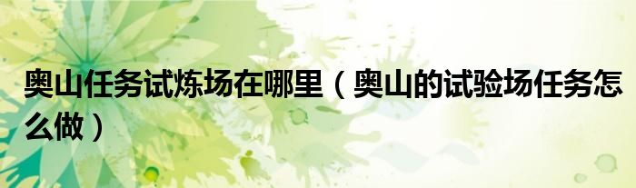 关于奥山任务试炼场在哪里,奥山的试验场任务怎么做这个很多人还不知道,今天菲菲来为大家解答以上的问题,现在让我们一起来看看吧!
