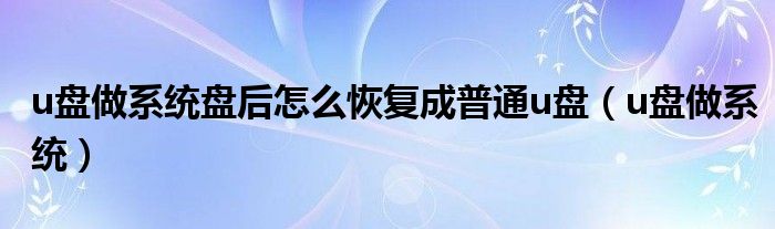 大家好,来宝来为大家解答以下问题,u盘做系统盘后怎么恢复成普通u盘,u盘做系统很多人还不知道,今天让我们一起来看看吧!