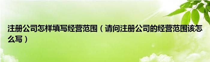 关于注册公司怎样填写经营范围,请问注册公司的经营范围该怎么写这个很多人还不知道,今天菲菲来为大家解答以上的问题,现在让我们一起来看看吧!