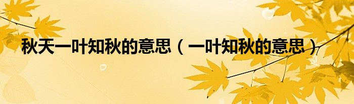 关于秋天一叶知秋的意思,一叶知秋的意思这个很多人还不知道,今天菲菲来为大家解答以上的问题,现在让我们一起来看看吧!