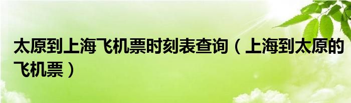 关于太原到上海飞机票时刻表查询,上海到太原的飞机票这个很多人还不知道,今天菲菲来为大家解答以上的问题,现在让我们一起来看看吧!