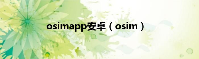 大家好,来宝来为大家解答以下问题,osimapp安卓,osim很多人还不知道,今天让我们一起来看看吧!