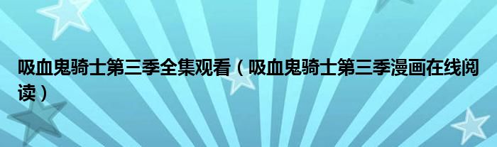 关于吸血鬼骑士第三季全集观看,吸血鬼骑士第三季漫画在线阅读这个很多人还不知道,今天菲菲来为大家解答以上的问题,现在让我们一起来看看吧!