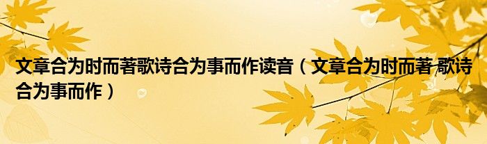 关于文章合为时而著歌诗合为事而作读音,文章合为时而著 歌诗合为事而作这个很多人还不知道,今天菲菲来为大家解答以上的问题,现在让我们一起来看看吧!