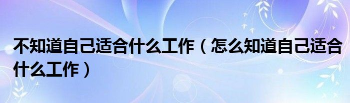 关于不知道自己适合什么工作,怎么知道自己适合什么工作这个很多人还不知道,今天菲菲来为大家解答以上的问题,现在让我们一起来看看吧!