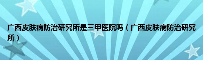 关于广西皮肤病防治研究所是三甲医院吗,广西皮肤病防治研究所这个很多人还不知道,今天菲菲来为大家解答以上的问题,现在让我们一起来看看吧!