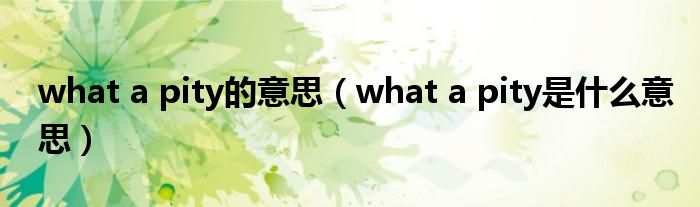 关于what a pity的意思,what a pity是什么意思这个很多人还不知道,今天菲菲来为大家解答以上的问题,现在让我们一起来看看吧!