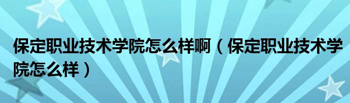 关于保定职业技术学院怎么样啊,保定职业技术学院怎么样这个很多人还不知道,今天菲菲来为大家解答以上的问题,现在让我们一起来看看吧!