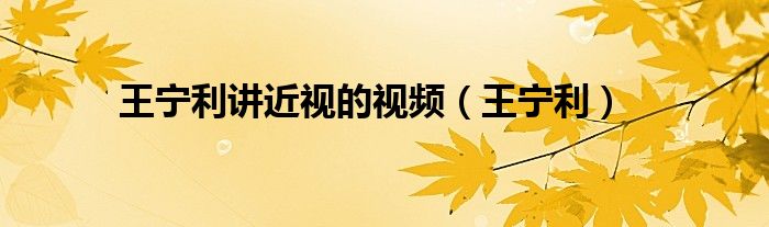 关于王宁利讲近视的视频,王宁利这个很多人还不知道,今天菲菲来为大家解答以上的问题,现在让我们一起来看看吧!