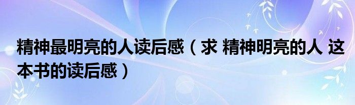 关于精神最明亮的人读后感,求 精神明亮的人 这本书的读后感这个很多人还不知道,今天菲菲来为大家解答以上的问题,现在让我们一起来看看吧!