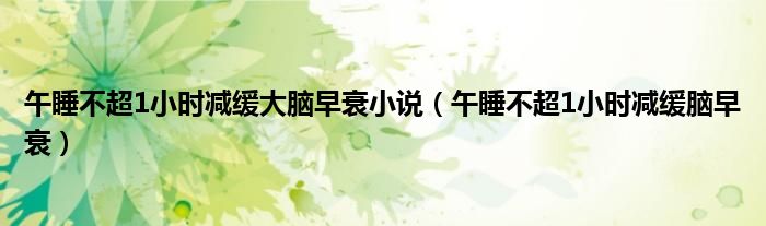 大家好,小飞来为大家解答以上问题,午睡不超1小时减缓大脑早衰小说,午睡不超1小时减缓脑早衰很多人还不知道,现在让我们一起来看看吧!