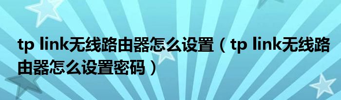tp link无线路由器怎么设置(tp link无线路由器怎么设置密码)