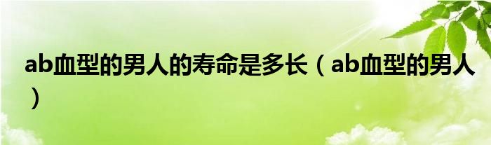 ab血型的男人的寿命是多长,ab血型的男人这个很多人还不知道,小飞来为大家解答以上的问题。现在让我们一起来看看吧!