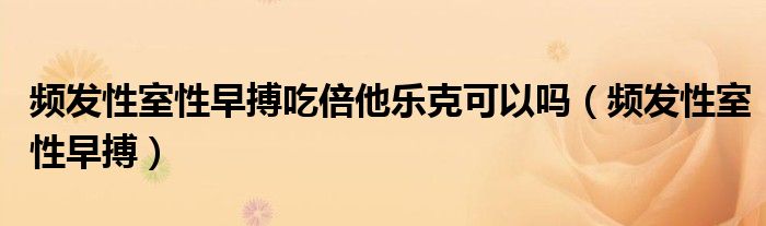 频发性室性早搏吃倍他乐克可以吗,频发性室性早搏这个很多人还不知道,小飞来为大家解答以上的问题。现在让我们一起来看看吧!