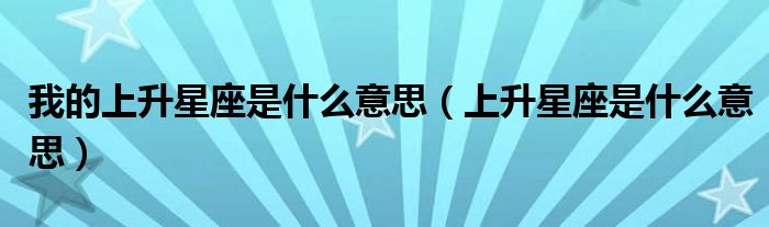 关于我的上升星座是什么意思,上升星座是什么意思这个很多人还不知道,今天菲菲来为大家解答以上的问题,现在让我们一起来看看吧!