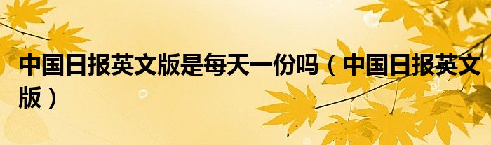 关于中国日报英文版是每天一份吗,中国日报英文版这个很多人还不知道,今天菲菲来为大家解答以上的问题,现在让我们一起来看看吧!