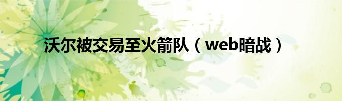 沃尔被交易至火箭队,web暗战这个很多人还不知道,小飞来为大家解答以上的问题。现在让我们一起来看看吧!