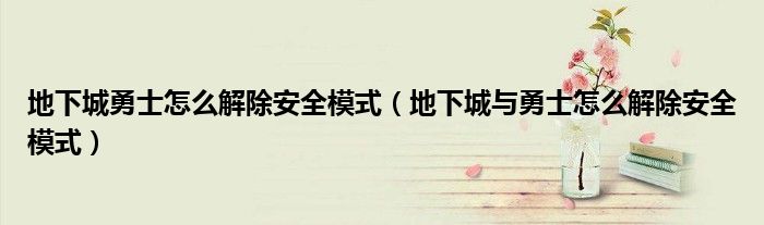 地下城勇士怎么解除安全模式(地下城与勇士怎么解除安全模式)