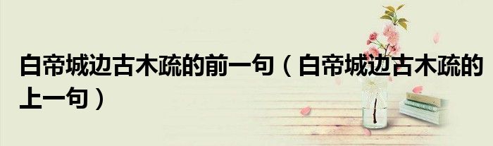 白帝城边古木疏的前一句,白帝城边古木疏的上一句这个很多人还不知道,小飞来为大家解答以上的问题。现在让我们一起来看看吧!