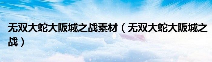 无双大蛇大阪城之战素材,无双大蛇大阪城之战这个很多人还不知道,小飞来为大家解答以上的问题。现在让我们一起来看看吧!