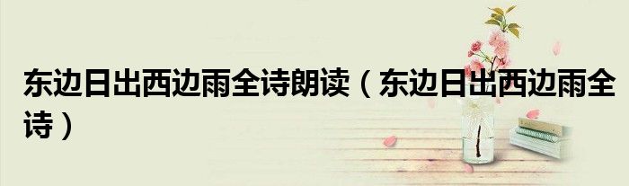 东边日出西边雨全诗朗读,东边日出西边雨全诗这个很多人还不知道,小飞来为大家解答以上的问题。现在让我们一起来看看吧!