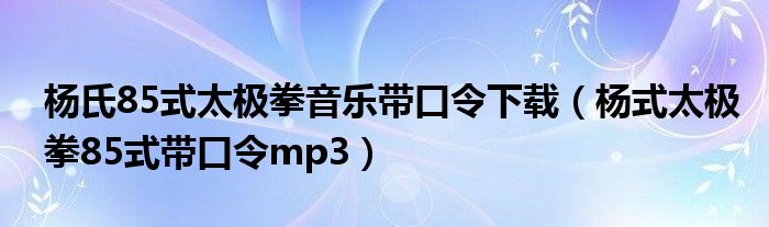 关于杨氏85式太极拳音乐带口令下载,杨式太极拳85式带口令mp3这个很多人还不知道,今天菲菲来为大家解答以上的问题,现在让我们一起来看看吧!