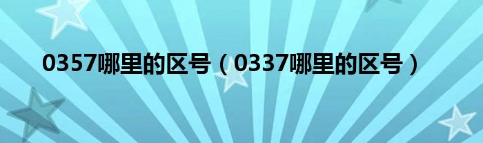 关于0357哪里的区号,0337哪里的区号这个很多人还不知道,今天菲菲来为大家解答以上的问题,现在让我们一起来看看吧!