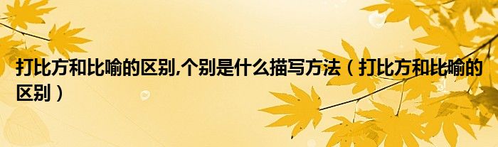 关于打比方和比喻的区别,个别是什么描写方法,打比方和比喻的区别这个很多人还不知道,今天菲菲来为大家解答以上的问题,现在让我们一起来看看吧!