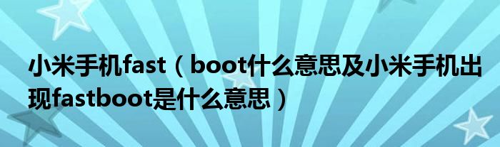 大家好,小常来为大家解答以上问题。小米手机fast,boot什么意思及小米手机出现fastboot是什么意思很多人还不知道,现在让我们一起来看看吧!