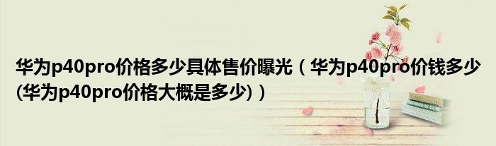 大家好,小常来为大家解答以上问题。华为p40pro价格多少具体售价曝光,华为p40pro价钱多少(华为p40pro价格大概是多少)很多人还不知道,现在让我们一起来看看吧!