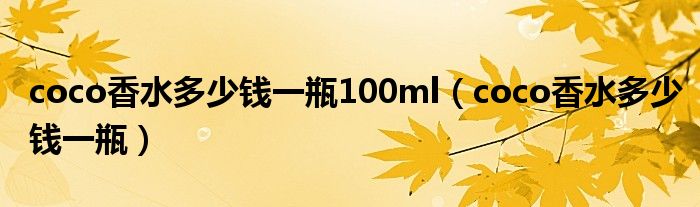 关于coco香水多少钱一瓶100ml,coco香水多少钱一瓶这个很多人还不知道,今天菲菲来为大家解答以上的问题,现在让我们一起来看看吧!