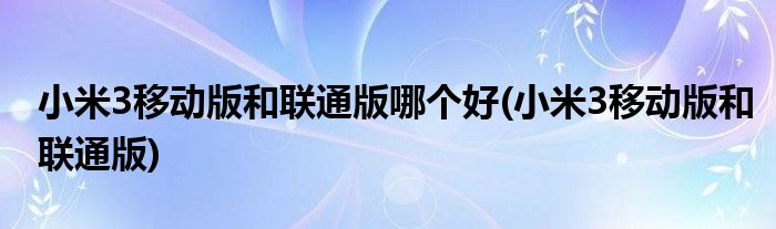 大家好,小常来为大家解答以上问题。小米3移动版和联通版哪个好(小米3移动版和联通版)很多人还不知道,现在让我们一起来看看吧!