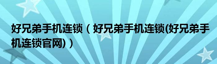 大家好,小常来为大家解答以上问题。好兄弟手机连锁,好兄弟手机连锁(好兄弟手机连锁官网)很多人还不知道,现在让我们一起来看看吧!