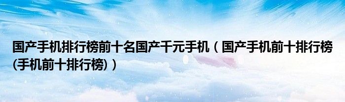 大家好,小常来为大家解答以上问题。国产手机排行榜前十名国产千元手机,国产手机前十排行榜(手机前十排行榜)很多人还不知道,现在让我们一起来看看吧!