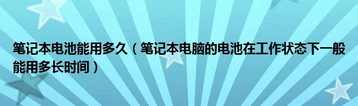 1、现在的主流家用笔记本一般都是2到3个小时。2、许多商务笔记本可以使用3、4小时甚至更长时间。3、同时笔记本电池的使用效率越低使用次数越多,一年以上的使用次数越多,原来的3个小时可能只有2个小时,保养不好的可能只有1个小时。4、有几种使用电池的情况:程序少运行的程序多。玩这个游戏最耗电一般能撑2个小时就好了。还有一些程序使用CD-ROM驱动器播放DVD,并使用更多的CPU计算资源,所有这些都消耗更多的电力。5、最好在使用电池时关闭所有不使用的设备,在不使用Internet时关闭网卡,并关闭所有不使用的进程。6、网上也有一些相关的电池优化和保护软件,可以起到一定的作用。扩展资料笔记本电脑电池保养事项:1、请不要取出电池单独存放。很多人喜欢把它拿下来存放,这实际上是一个错误,这也违背了购买笔记本电脑的一个重要点即备用电源。2、当电池插入时,电源模块将自动检测电池是否充满电。如果完全充电,电池将不充电,但它处于待机状态,它将使用涓流充电电池在任何时候。当电池用完一段时间后,电源模块将为电池充电。完全自动断开不会重新充电。3、蓄电池每月充放电一次。记住每月做一次,电池应正常使用直至用完。参考资料:百度百科-笔记本电池参考资料:人民网-笔记本电脑的电池又坏了?这些方法能够延长它的使用寿命