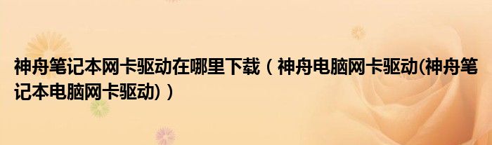 大家好,小常来为大家解答以上问题。神舟笔记本网卡驱动在哪里下载,神舟电脑网卡驱动(神舟笔记本电脑网卡驱动)很多人还不知道,现在让我们一起来看看吧!
