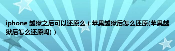 大家好,小常来为大家解答以上问题。iphone 越狱之后可以还原么,苹果越狱后怎么还原(苹果越狱后怎么还原吗)很多人还不知道,现在让我们一起来看看吧!