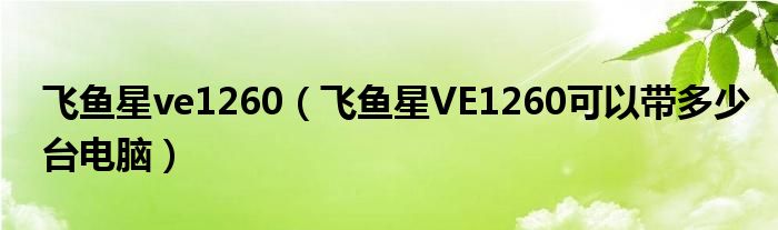 大家好,小常来为大家解答以上问题。飞鱼星ve1260,飞鱼星VE1260可以带多少台电脑很多人还不知道,现在让我们一起来看看吧!