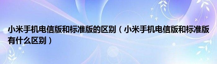 大家好,小常来为大家解答以上问题。小米手机电信版和标准版的区别,小米手机电信版和标准版有什么区别很多人还不知道,现在让我们一起来看看吧!