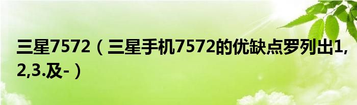 大家好,小常来为大家解答以上问题。三星7572,三星手机7572的优缺点罗列出1,2,3.及-很多人还不知道,现在让我们一起来看看吧!