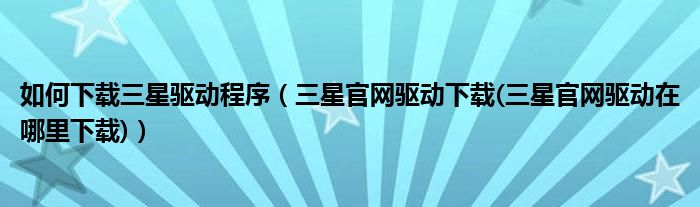 大家好,小常来为大家解答以上问题。如何下载三星驱动程序,三星官网驱动下载(三星官网驱动在哪里下载)很多人还不知道,现在让我们一起来看看吧!