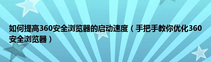 大家好,今天小悦来为大家解答以上问题。如何提高360安全浏览器的启动速度,手把手教你优化360安全浏览器很多人还不知道,现在让我们一起来看看吧!