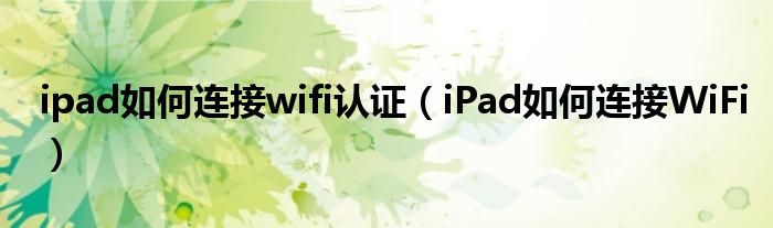 大家好,今天小悦来为大家解答以上问题。ipad如何连接wifi认证,iPad如何连接WiFi很多人还不知道,现在让我们一起来看看吧!
