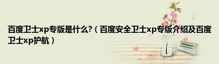 大家好,今天小悦来为大家解答以上问题。百度卫士xp专版是什么?,百度安全卫士xp专版介绍及百度卫士xp护航很多人还不知道,现在让我们一起来看看吧!