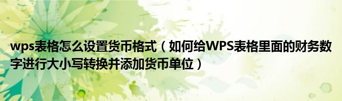 大家好,今天小悦来为大家解答以上问题。wps表格怎么设置货币格式,如何给WPS表格里面的财务数字进行大小写转换并添加货币单位很多人还不知道,现在让我们一起来看看吧!