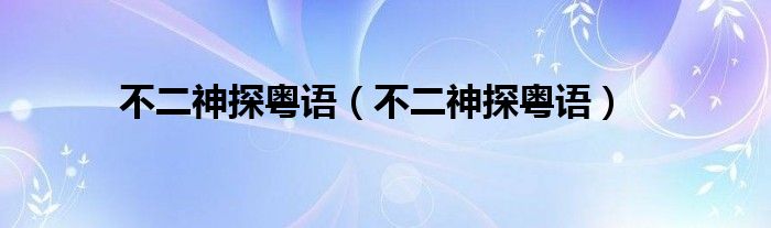 不二神探粤语,不二神探粤语这个很多人还不知道,小飞来为大家解答以上的问题。现在让我们一起来看看吧!
